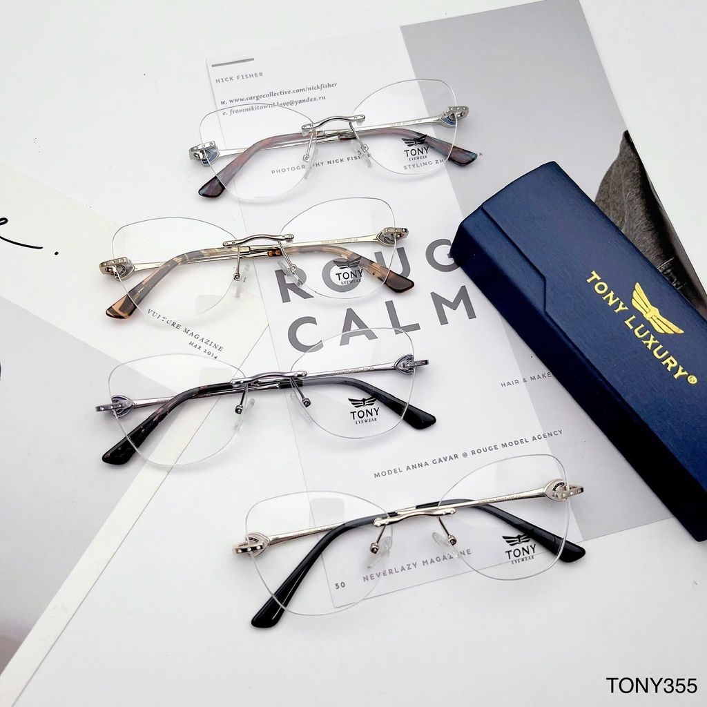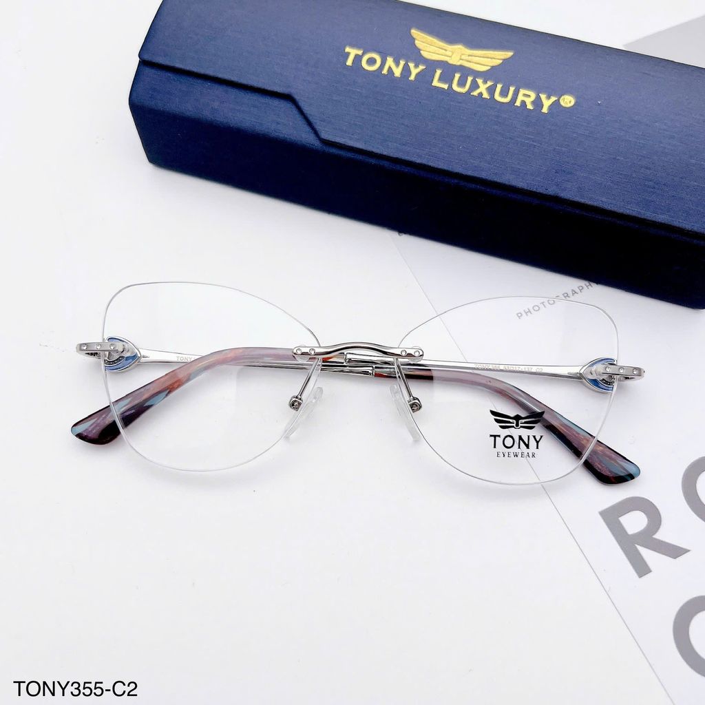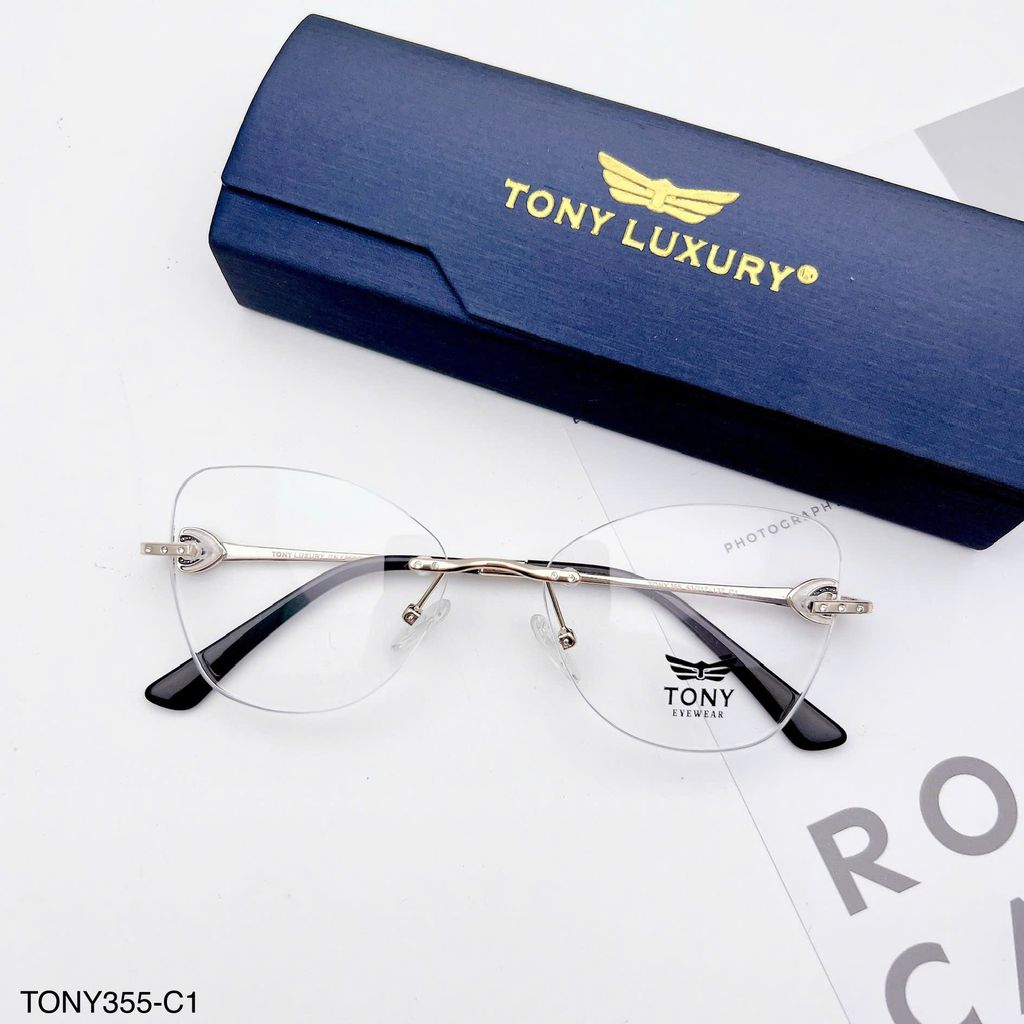 Gọng kính Tony Luxury TONY355 là mẫu gọng không viền thời thượng, được thiết kế theo dáng mắt mèo cá tính, tôn nét thanh tú cho gương mặt nữ. Phần càng kính làm từ chất liệu