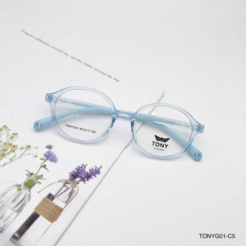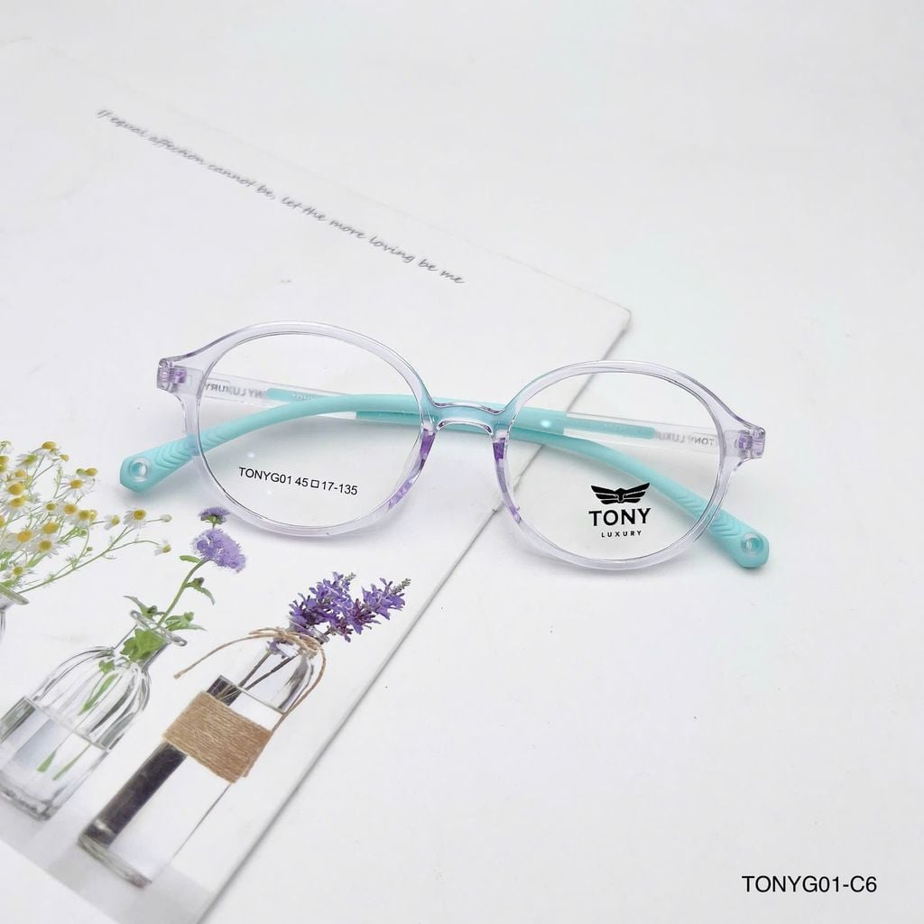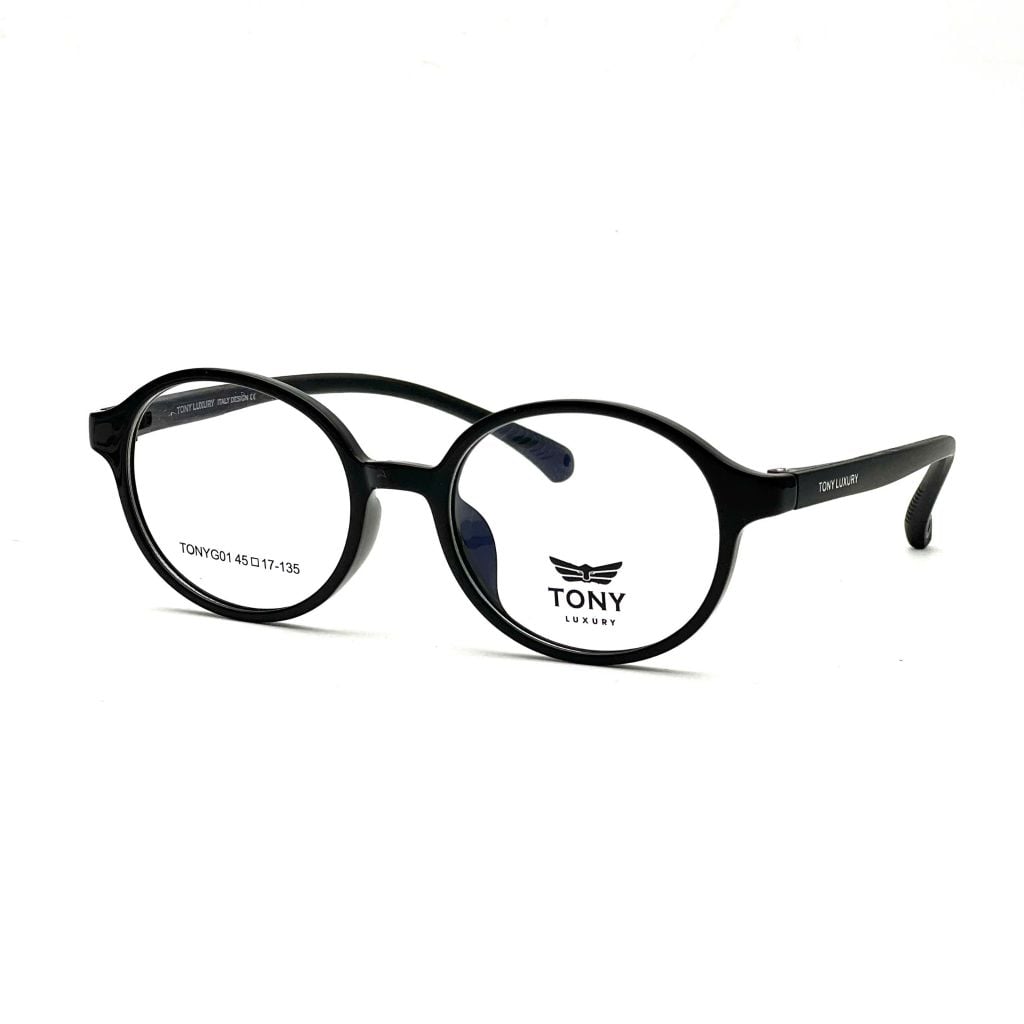 Gọng kính trẻ em Tony Luxury TONYG01 dáng tròn dễ thương, phù hợp cho bé từ 4–10 tuổi với thiết kế mềm mại, thân thiện và đáng yêu. Chất liệu nhựa dẻo TR90 siêu nhẹ, linh hoạt và bền bỉ, mang lại cảm giác thoải mái suốt ngày dài mà không gây áp lực lên mũi hay tai. Càng kính bọc cao su giúp chống trượt hiệu quả, giữ kính cố định ngay cả khi bé vận động nhiều. Vừa giúp điều chỉnh thị lực, vừa là phụ kiện thời trang giúp bé tự tin và nổi bật mỗi ngày.