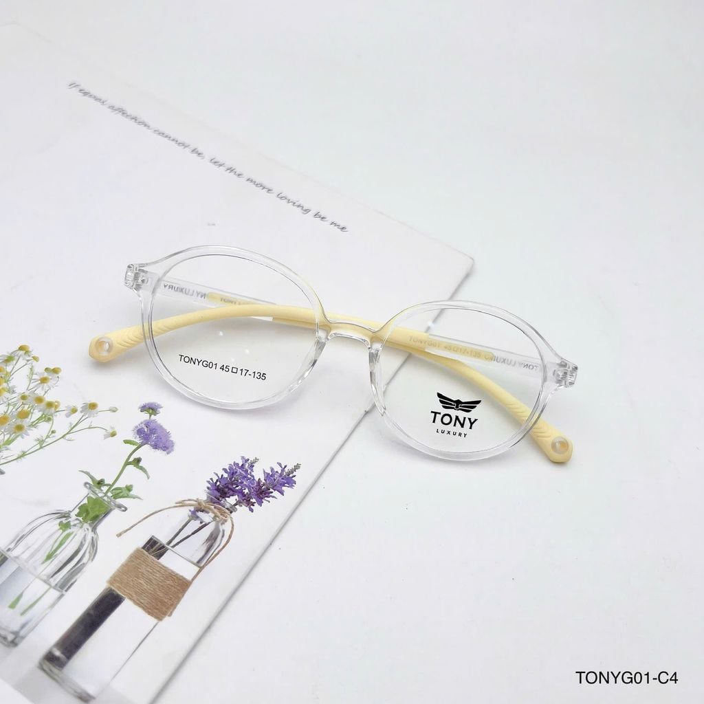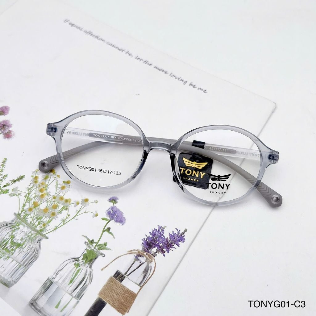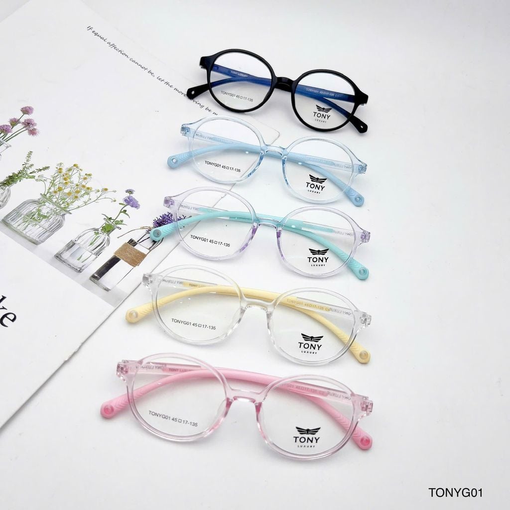 Gọng kính trẻ em Tony Luxury TONYG01 dáng tròn dễ thương, phù hợp cho bé từ 4–10 tuổi với thiết kế mềm mại, thân thiện và đáng yêu. Chất liệu nhựa dẻo TR90 siêu nhẹ, linh hoạt và bền bỉ, mang lại cảm giác thoải mái suốt ngày dài mà không gây áp lực lên mũi hay tai. Càng kính bọc cao su giúp chống trượt hiệu quả, giữ kính cố định ngay cả khi bé vận động nhiều. Vừa giúp điều chỉnh thị lực, vừa là phụ kiện thời trang giúp bé tự tin và nổi bật mỗi ngày.