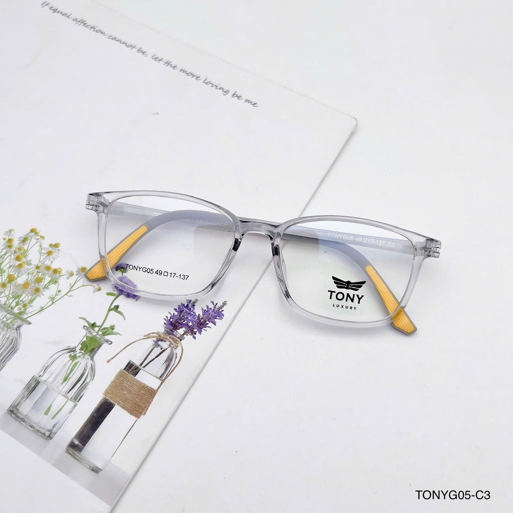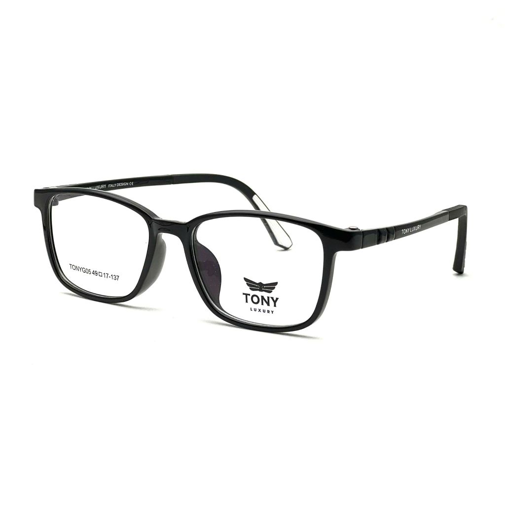 Gọng kính trẻ em Tony Luxury TONYG50 dáng vuông nhỏ gọn, phù hợp cho bé từ 4–10 tuổi với thiết kế thông minh, cá tính. Chất liệu nhựa dẻo TR90 siêu nhẹ, bền và linh hoạt, giúp đeo êm ái suốt ngày dài. Càng kính phối cao su chống trượt, ôm khít khuôn mặt dù bé vận động nhiều. Vừa hỗ trợ điều chỉnh thị lực, vừa là phụ kiện thời trang giúp bé thêm tự tin và năng động.