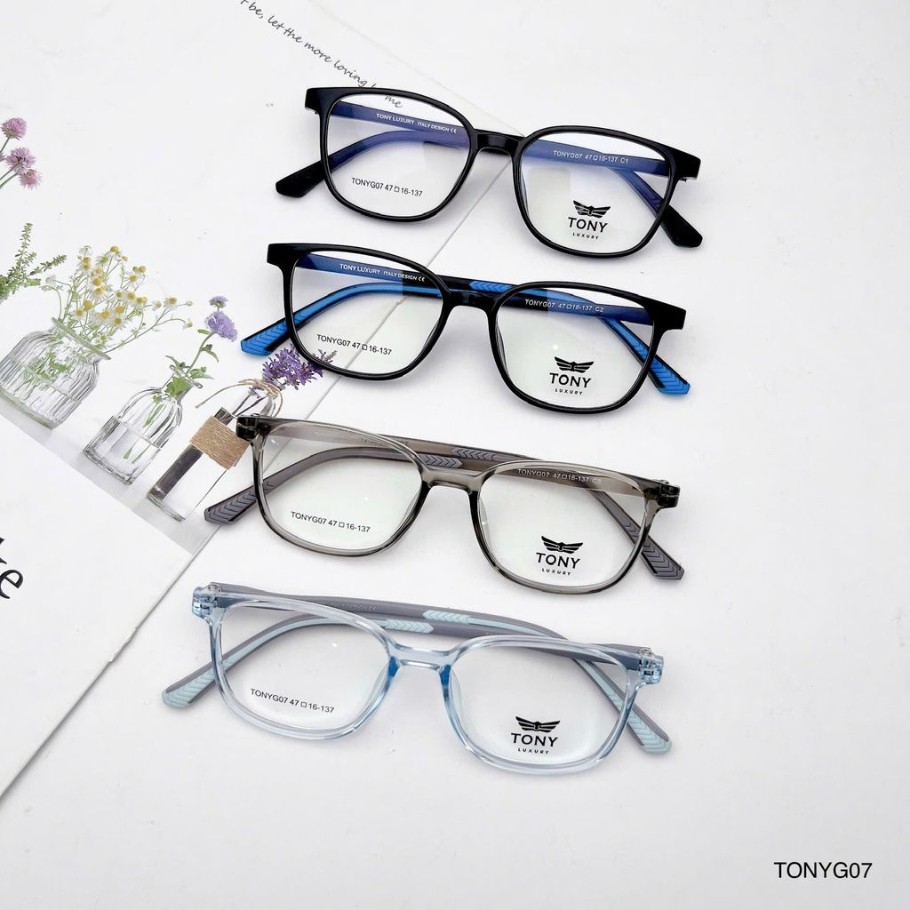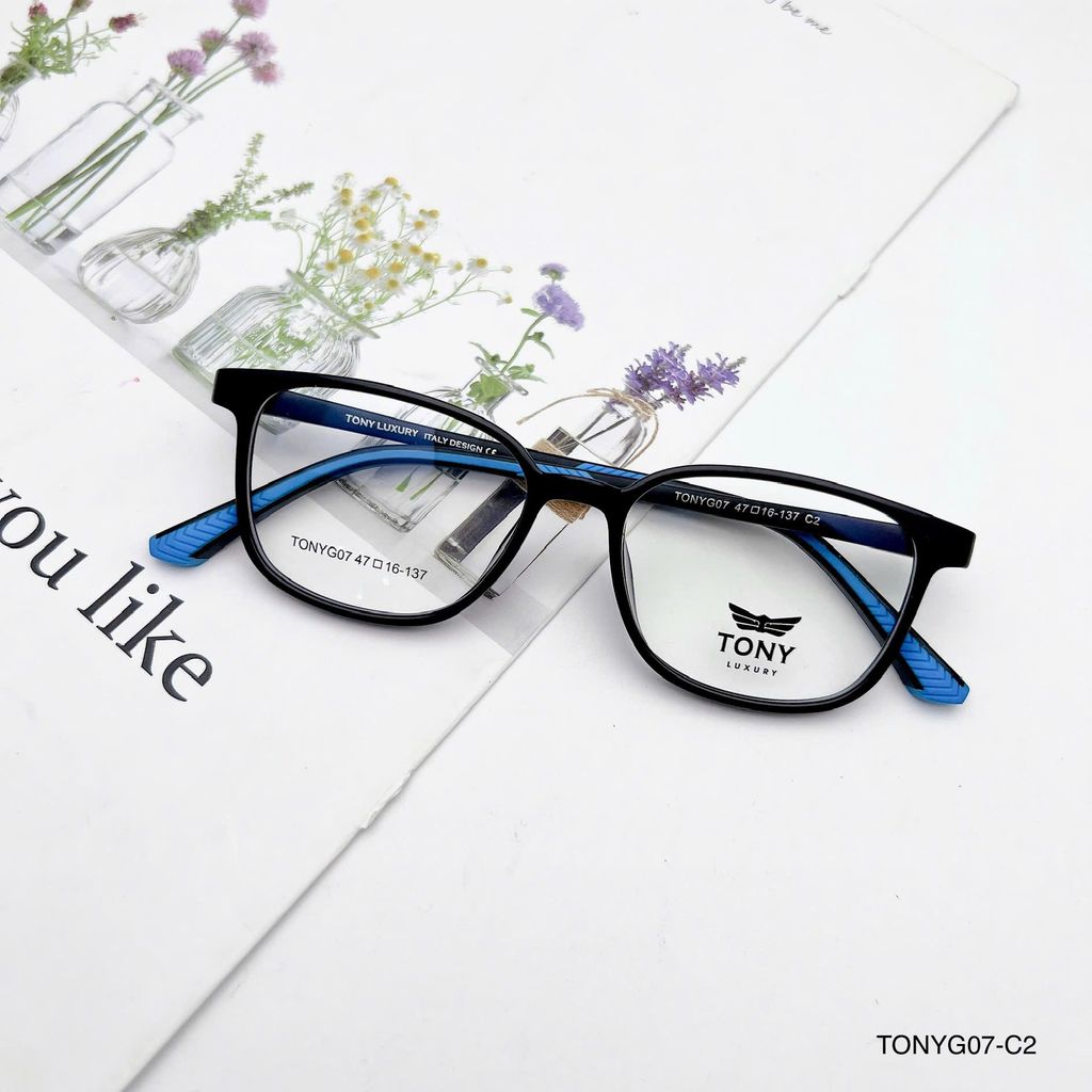 Gọng kính trẻ em Tony Luxury TONYG07 dáng vuông thời trang, thiết kế nhỏ nhắn phù hợp cho bé từ 4–10 tuổi. Gọng làm từ nhựa dẻo TR90 siêu nhẹ và dẻo dai, tạo cảm giác thoải mái khi đeo cả ngày mà không gây áp lực lên mũi hay tai. Càng kính có lớp phủ cao su chống trượt, giữ kính chắc chắn ngay cả khi bé vận động nhiều. TONYG07 không chỉ giúp điều chỉnh thị lực hiệu quả mà còn là điểm nhấn thời trang giúp bé thêm tự tin, năng động mỗi ngày.