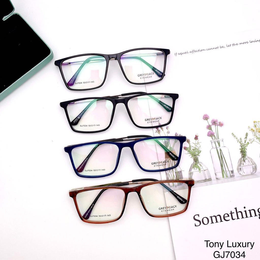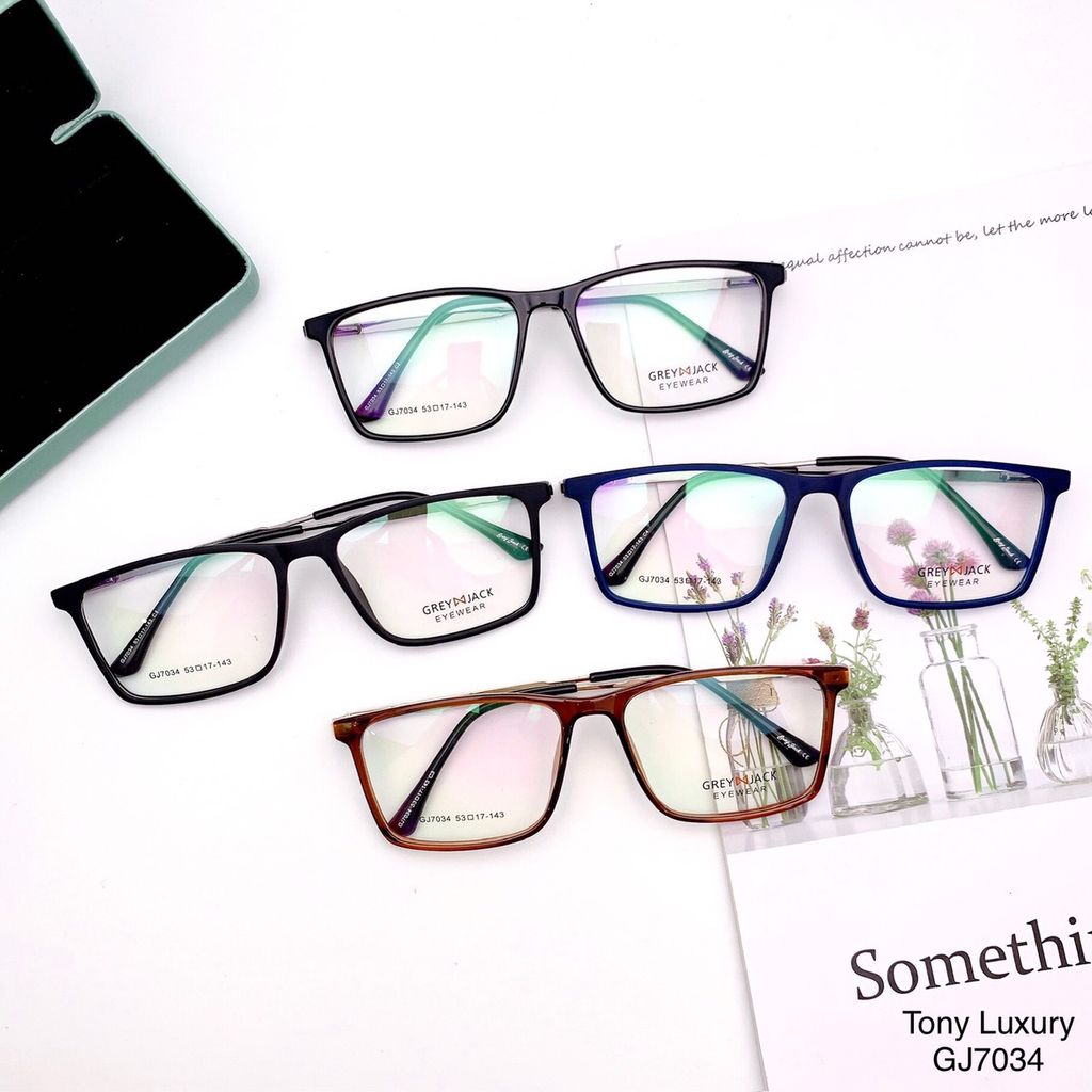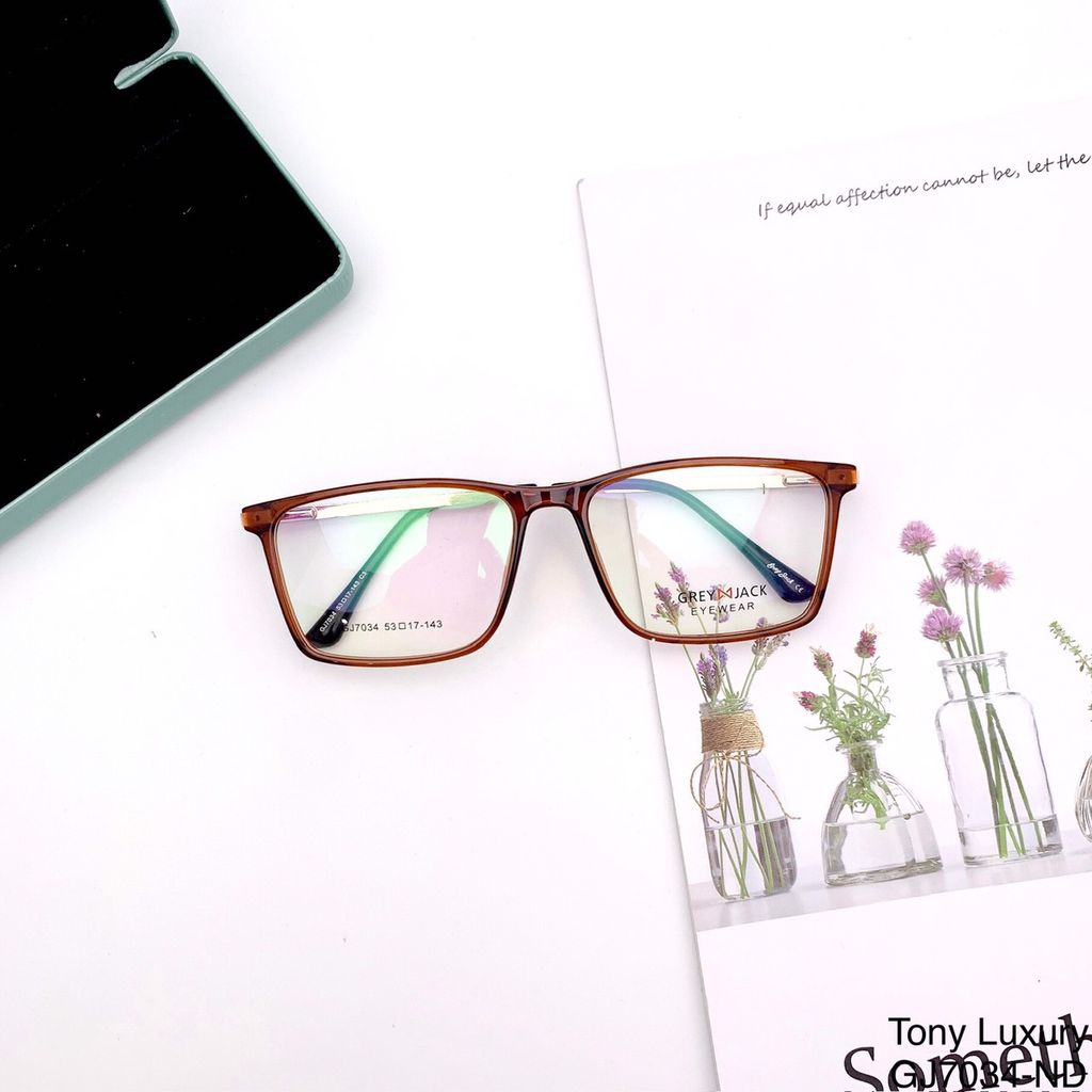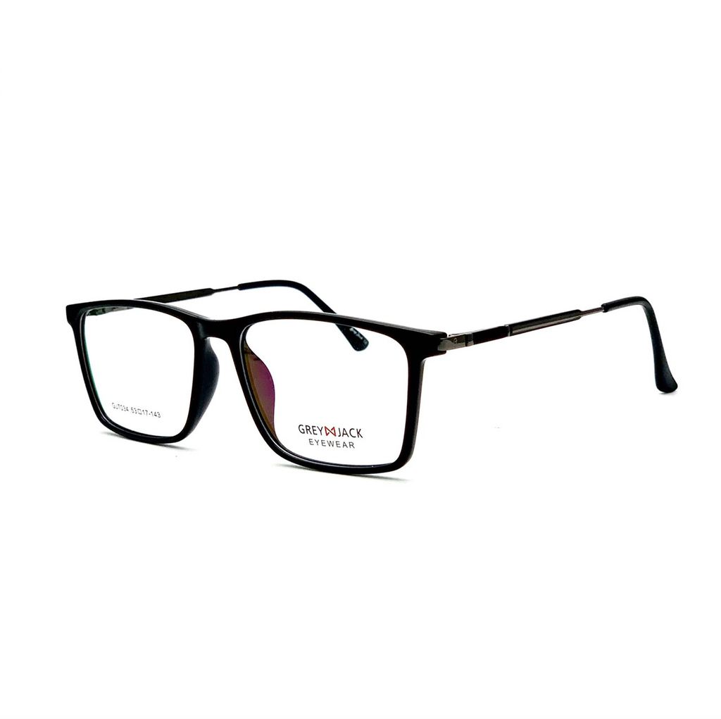 Gọng kính Grey Jack GJ7034 sở hữu thiết kế trẻ trung với sự kết hợp hài hòa giữa nhựa Acetate cao cấp và kim loại chắc chắn, tạo nên vẻ ngoài hiện đại, tinh tế nhưng vẫn giữ được độ bền vượt trội. Phần gọng trước bằng nhựa giúp ôm sát khuôn mặt, trong khi phần càng kim loại mảnh mang lại cảm giác nhẹ và thanh thoát khi đeo.