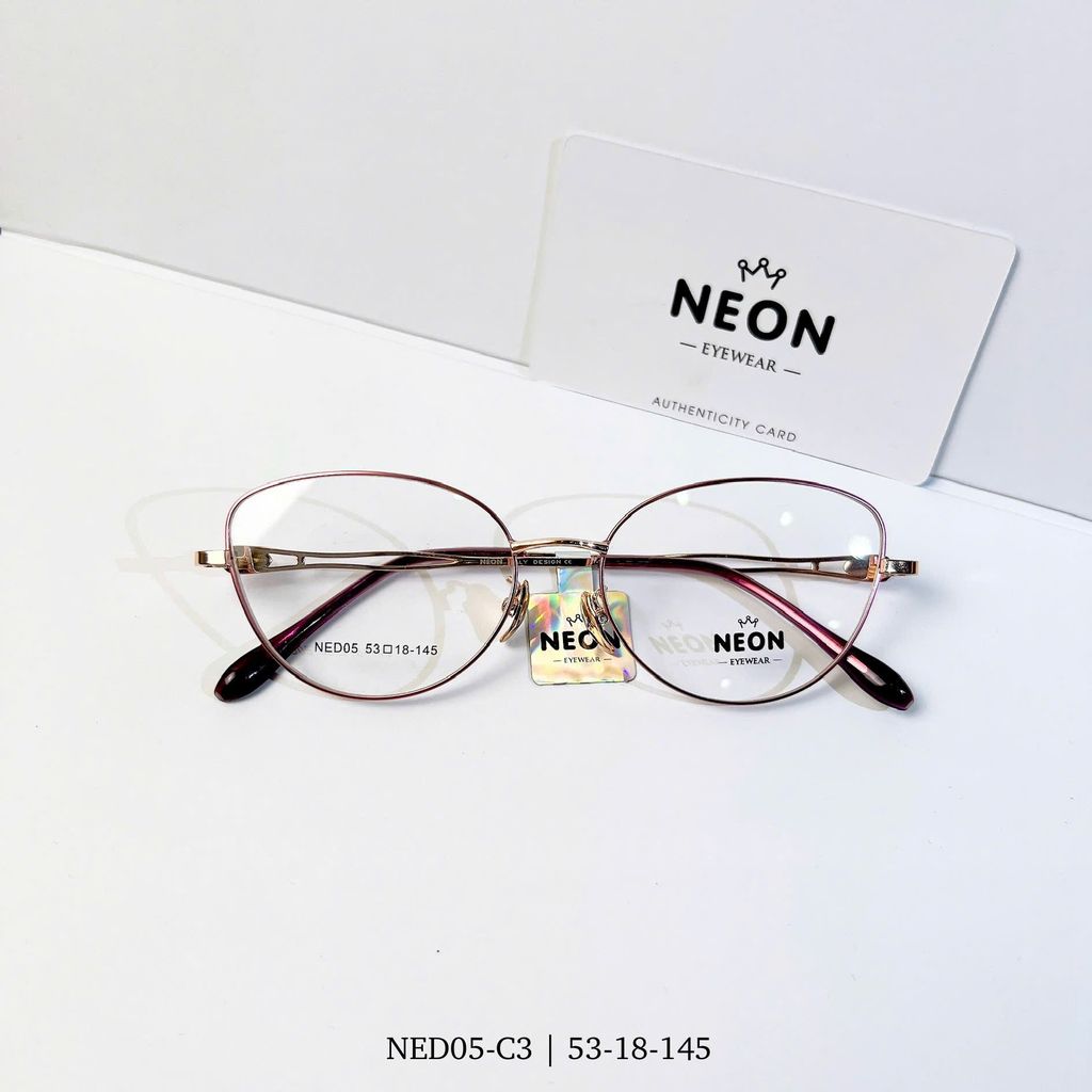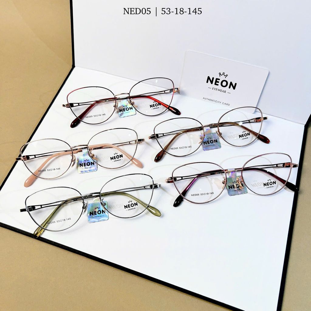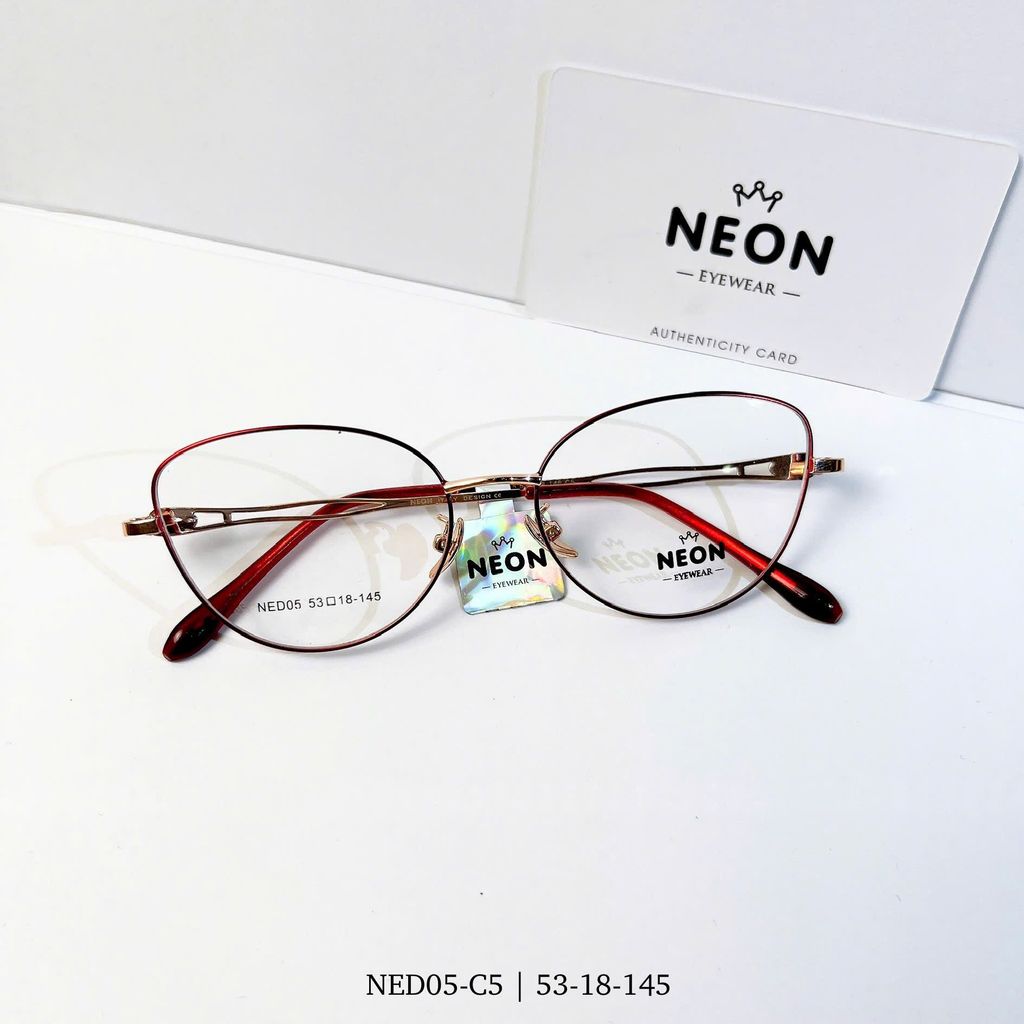 Gọng kính NED05 sở hữu thiết kế mắt mèo mềm mại nhưng sắc sảo, mang đến vẻ đẹp thanh lịch pha chút cá tính cho phái đẹp. Chất liệu kim loại cao cấp giúp gọng vừa nhẹ, vừa bền, phù hợp sử dụng hằng ngày hoặc làm phụ kiện thời trang tạo điểm nhấn cho gương mặt.