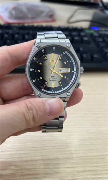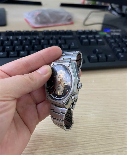 Hàng lướt 80% - Đồng hồ ORIENT - dây kim loại màu trắng - mặt màu đen vàng