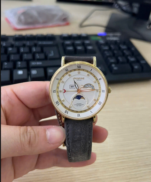Hàng lướt 85% - Đồng hồ SUNRISE - 1117PA - Dây da màu nâu - mặt màu trắng