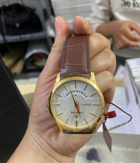 Hàng mới 100% - Đồng hồ SUNRISE - DM779PWA - dây quai da màu nâu - mặt màu trắng