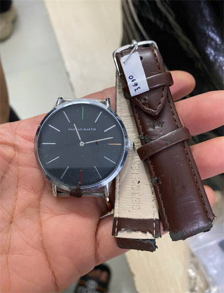 Hàng mới - hỏng quai - Đồng hồ HANNAH MARTIN - 3690 - dây quai da màu nâu - mặt màu đen
