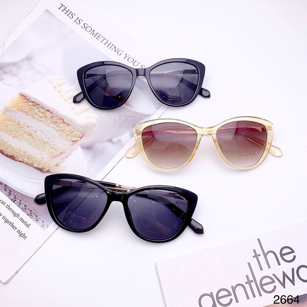 Kính mát Tony Luxury 2664 là mẫu kính mát kiểu mắt mèo hiện đại dành riêng cho phái đẹp, với thiết kế tinh tế kết hợp giữa nhựa cao cấp và kim loại. Phần gọng tạo cảm giác chắc chắn nhưng vẫn nhẹ nhàng khi đeo, cùng tròng kính chống tia UV400, bảo vệ mắt tối ưu trong những ngày nắng. Kiểu dáng mắt mèo giúp tôn lên đường nét khuôn mặt, mang lại vẻ ngoài sang trọng và cá tính.